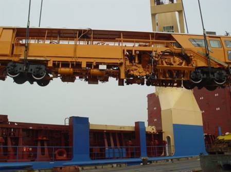 2004年9月-2006年7月,共发运工程机械和铁轨、道岔等物资约25200立方米,90%为大件,最大件175吨,装港上海港,卸货港为委内瑞拉卡贝略,货物在整个过程中没有出现货损货差。由于铁路施工机械品种较为复杂,大小不一,作业风险较大,为了完成吊装过程,项目团队会同港务局聘请上海铁路局救援部门参与方案制定和作业过程,确保了装船作业的顺利进行。